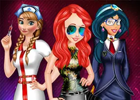 As princesas Jasmine, Elsa e Rapunzel estudam no mesmo colégio e como toda garota elas adoram estar sempre na moda então ajude as princesas a criarem um look incrível para elas arrasarem pelos corredores do colégio com seus visuais.